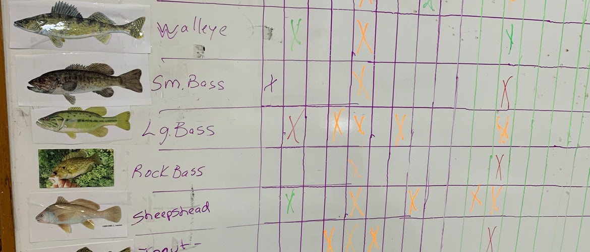 CATCH ALL 12 SPECIES OF FISH AND WIN PRIZES!NORTHERN, WALLEY, SM. BASS, LG. BASS, ROCK BASS, SHEEPSHEAD, BULLHEAD, TROUT(ANY SPECIES) , CATFISH(ANY SPECIES), BLUEGILL OR SUNFISH, CRAPPIE, PERCH